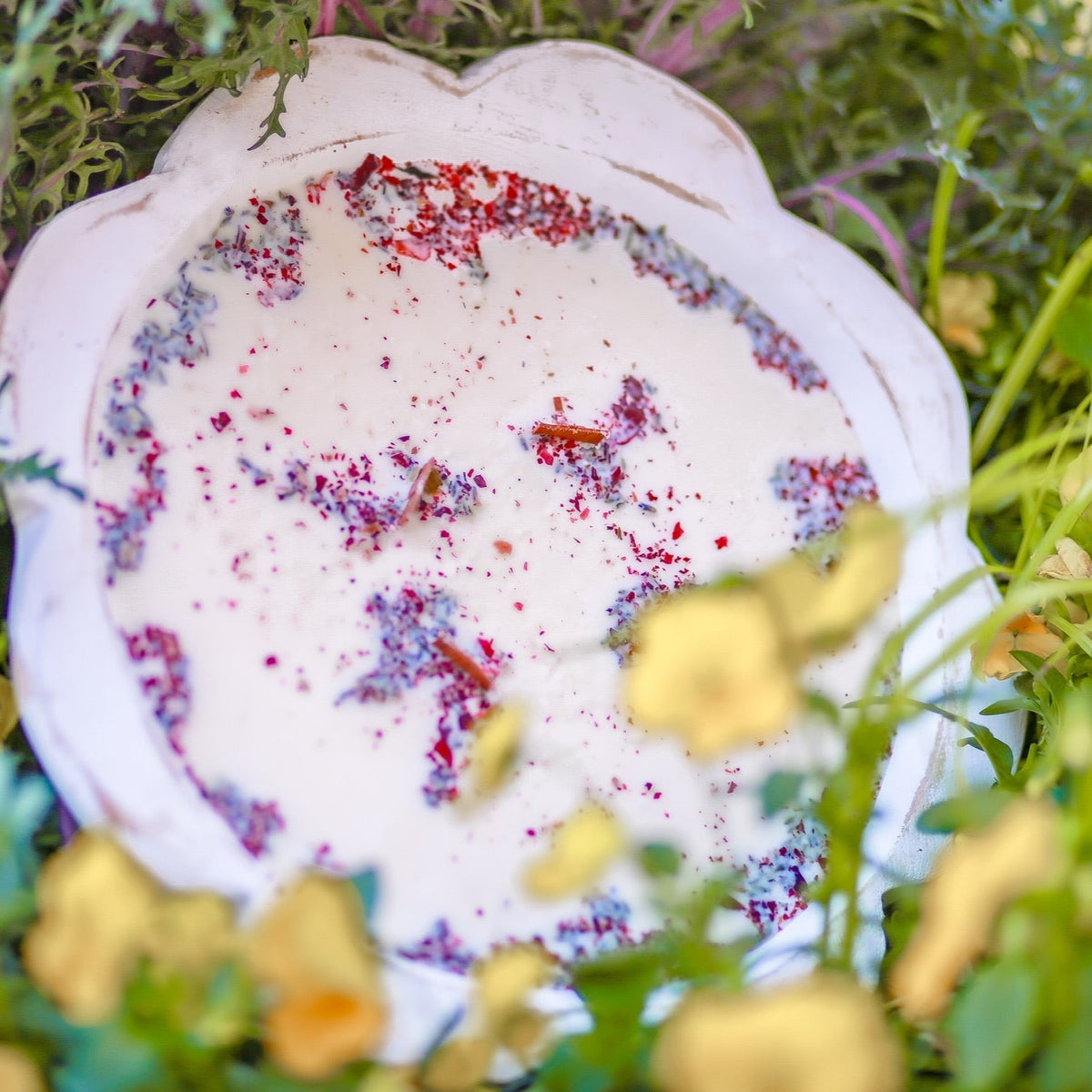 Enhance your candle experience with the Giant Flower Bowl, measuring 10-12 inches wide and with a depth of 2-2.5 inches. This luxurious bowl has a liquid volume of 36-40 ounces, providing a long-lasting and impressive display for any room.