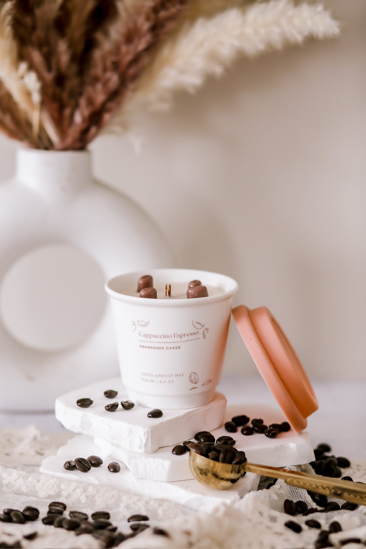 Cappuccino Espresso Candle – 8.4 oz Ceramic To-Go Cup | Chocolate Espresso Scented Candle | Abandoned Cakes
